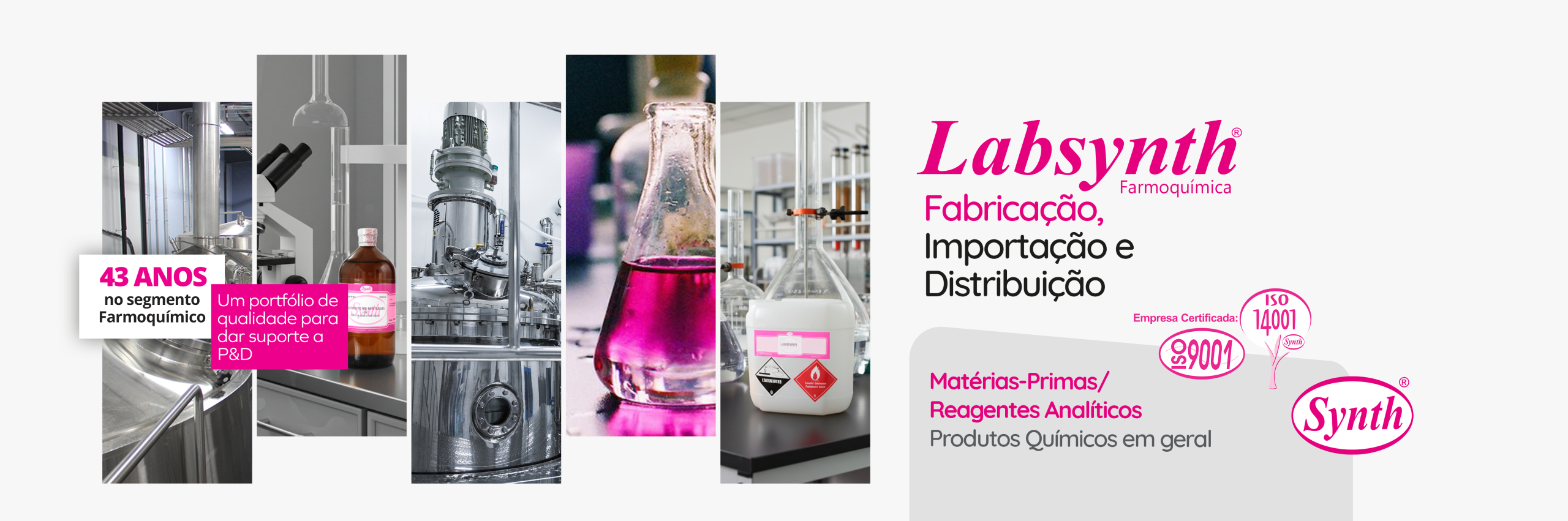 Somos uma empresa especializada na fabricação, distribuição e comercialização de Produtos Químicos, Matérias-Primas/Reagentes Analíticos, Equipamentos e Acessórios de Laboratórios para diversos segmentos industriais. Com mais de 40 anos de história, a LABSYNTH atua em todo o território nacional e é certificada pelas normas ISO 9001:2015 e ISO 14001:2015.